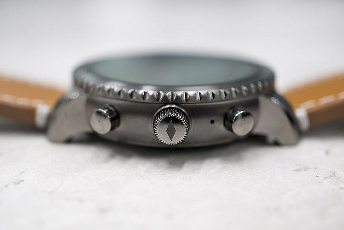 … 틱워치는 늘 왼쪽에 메뉴 버튼을 넣는다. 이것은 옳은 결정이다. 전통적인 관점에서 늘 몸통 오른쪽에 있던 용두를 대신하는 버튼의 역할을 볼 때 왼쪽은 비정상적이지만, 오른쪽에 버튼을 두면 팔짱을 끼거나 책상을 짚을 때 꺾인 손목이 버튼을 눌러 오작동의 원인이 되기 때문이다.