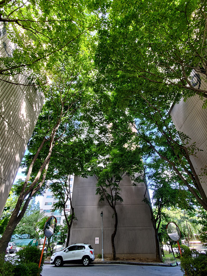 스냅드래곤 인사이더즈폰은 뒤에 3개의 카메라가 있다. 각각 6,400만 화소 표준, 1,200만 화소 광각, 800만 화소 3배 망원으로 구성되어 있다. 한 장소에서 광각과 표준, 망원으로 촬영해 본 샘플은 아래와 같으나 정식 제품이 아니므로 사진 품질에 대해 평가할 수 없는 점을 양해 바란다.