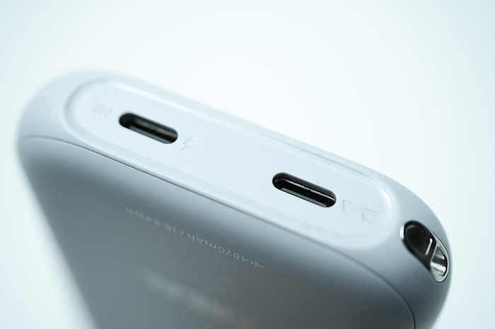 엑스리얼 빔은 엑스리얼이라는 사명 변경 후 처음 내놓는 제품이다. 그런데 형태가 좀 특이하다. 엔리얼 시절부터 내놓던 공간형 디스플레이 안경이 아니다. (실제 4,870mAh 배터리를 내장했지만) 마치 작은 휴대용 배터리처럼 생겼다. 본체 위와 양옆에 둥근 모양의 버튼들이 있고 하단 부에 두 개의 USB 단자, 상단에 방열판과 전원 버튼이 전부다. 새 제품이라기엔 뭔가 이상한 느낌이 드는 건 당연해 보인다. 엑스리얼로 사명 변경 이후 XR 세계에 대한 야심을 가득 담은 AR 안경이나 공간 디스플레이 안경을 기다렸던 이들에겐 ‘뜬금포’ 같아 보일 법도 하다.